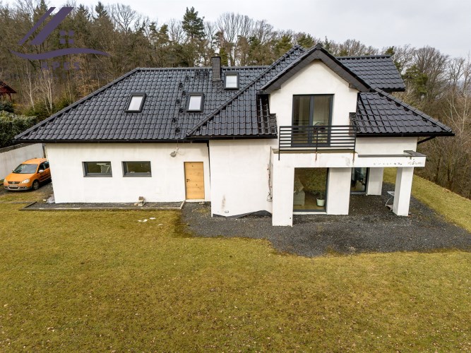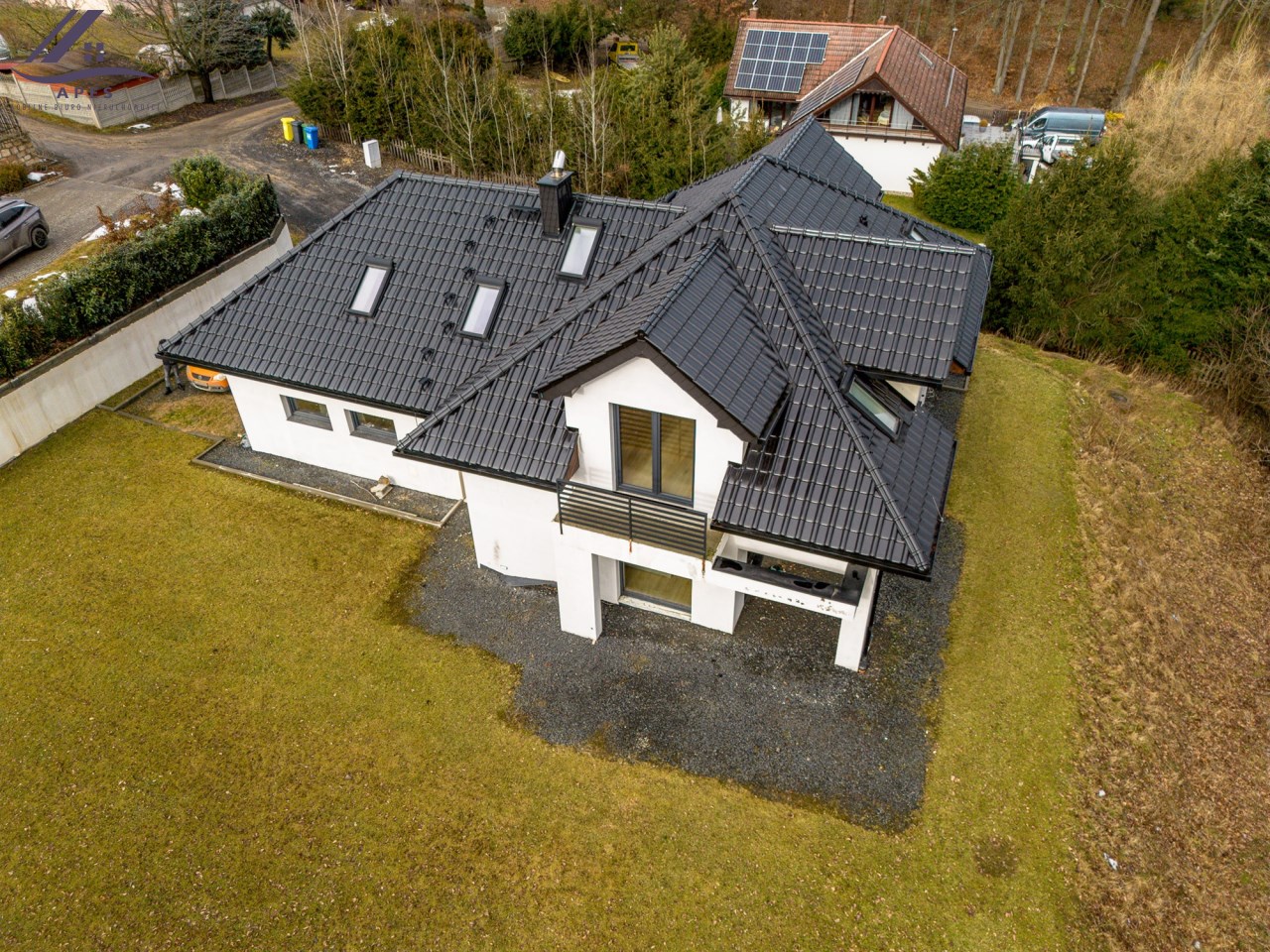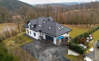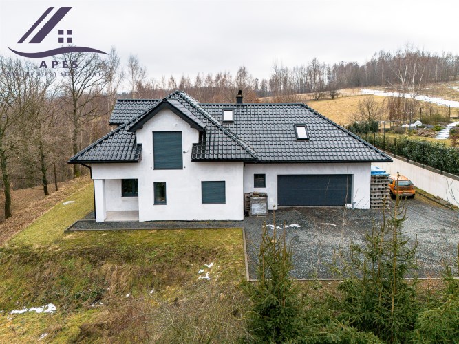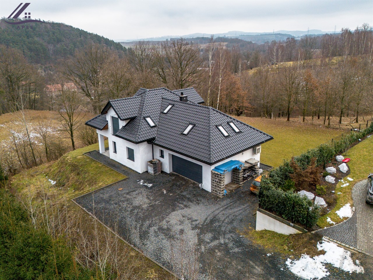 Dom usytuowany jest na działce o pow. 1400 m2 z bezpośrednim, panoramicznym widokiem na Szwajcarię Lwówecką, co czyni go jedną z najbardziej atrakcyjnych ofert w regionie.