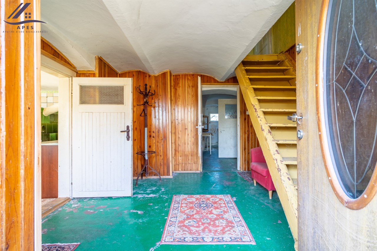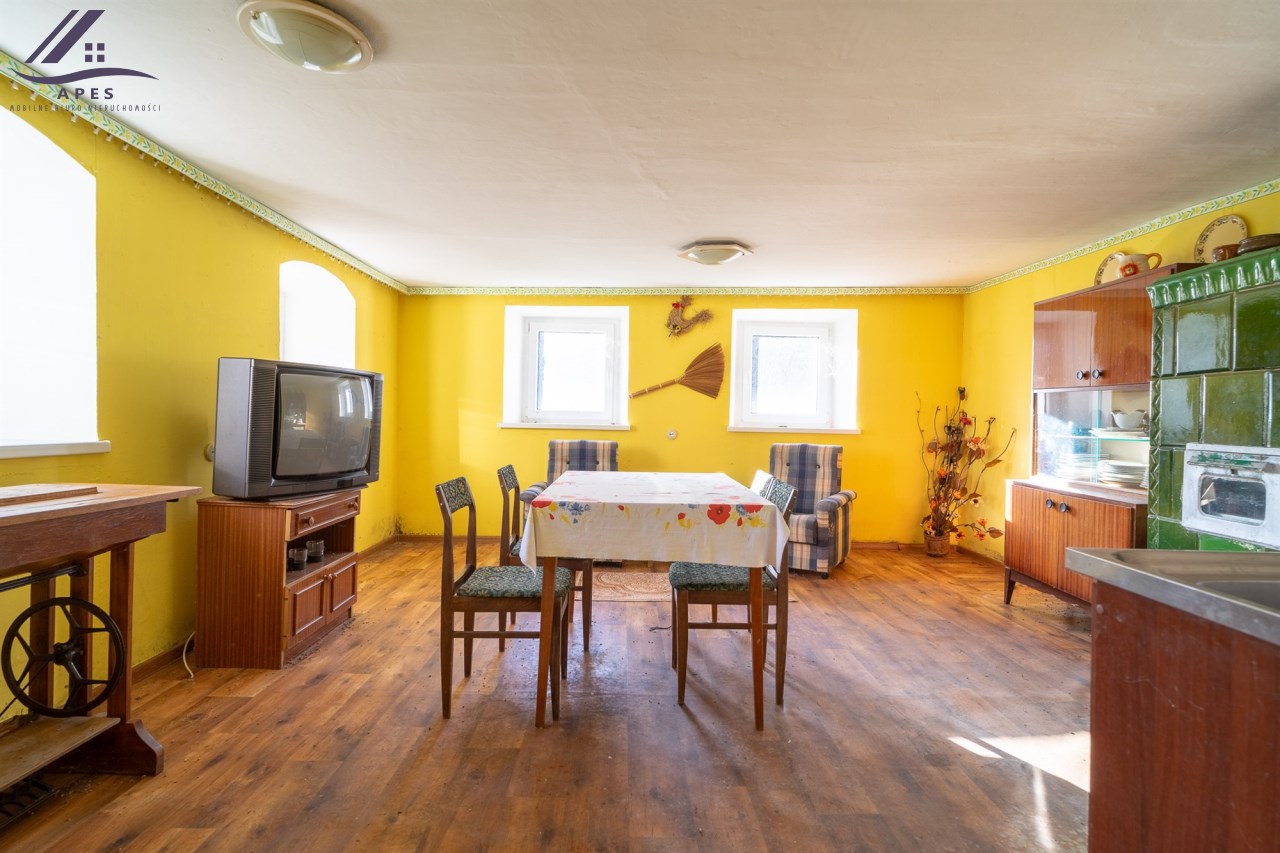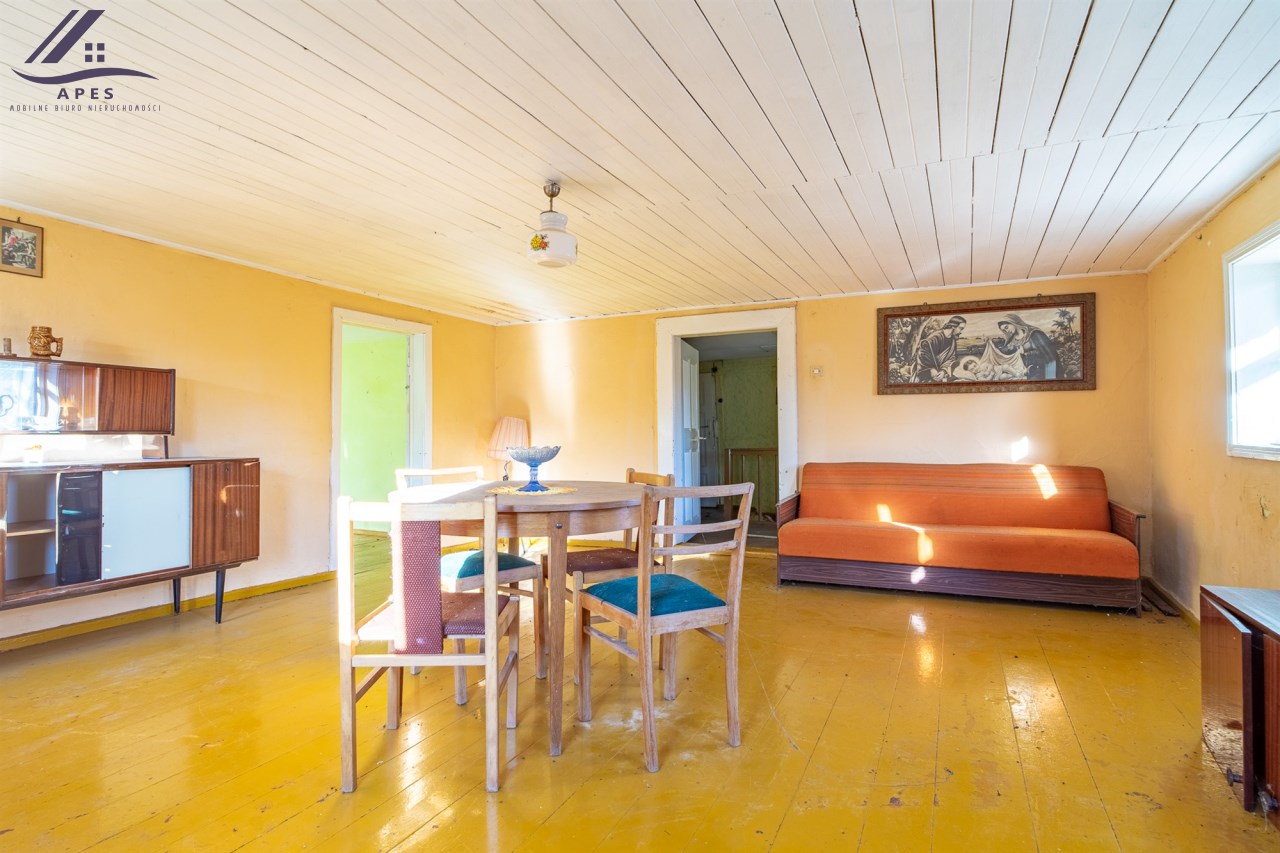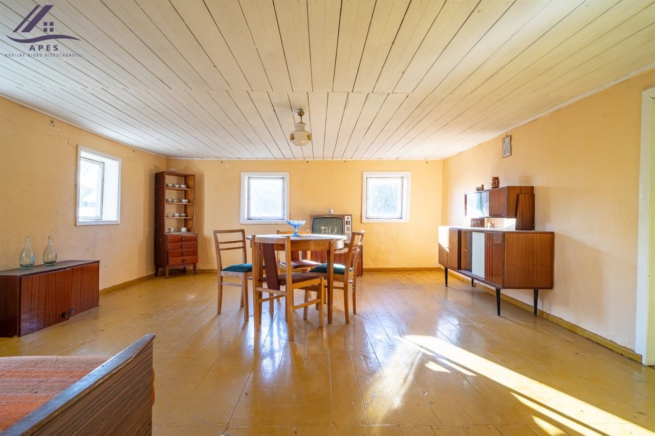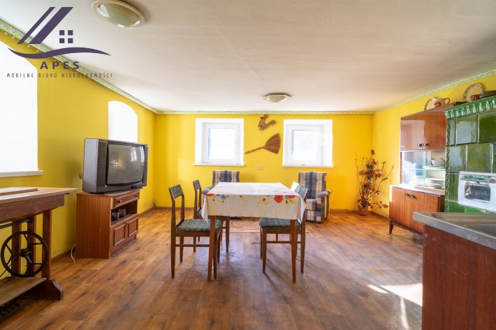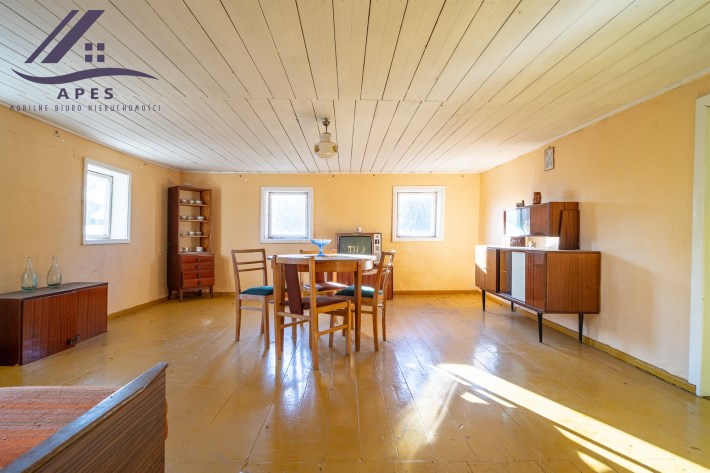 W ofercie dom wraz z pomieszczeniami gospodarczymi oraz stodołą, posadowione na działce o powierzchni 808m2.