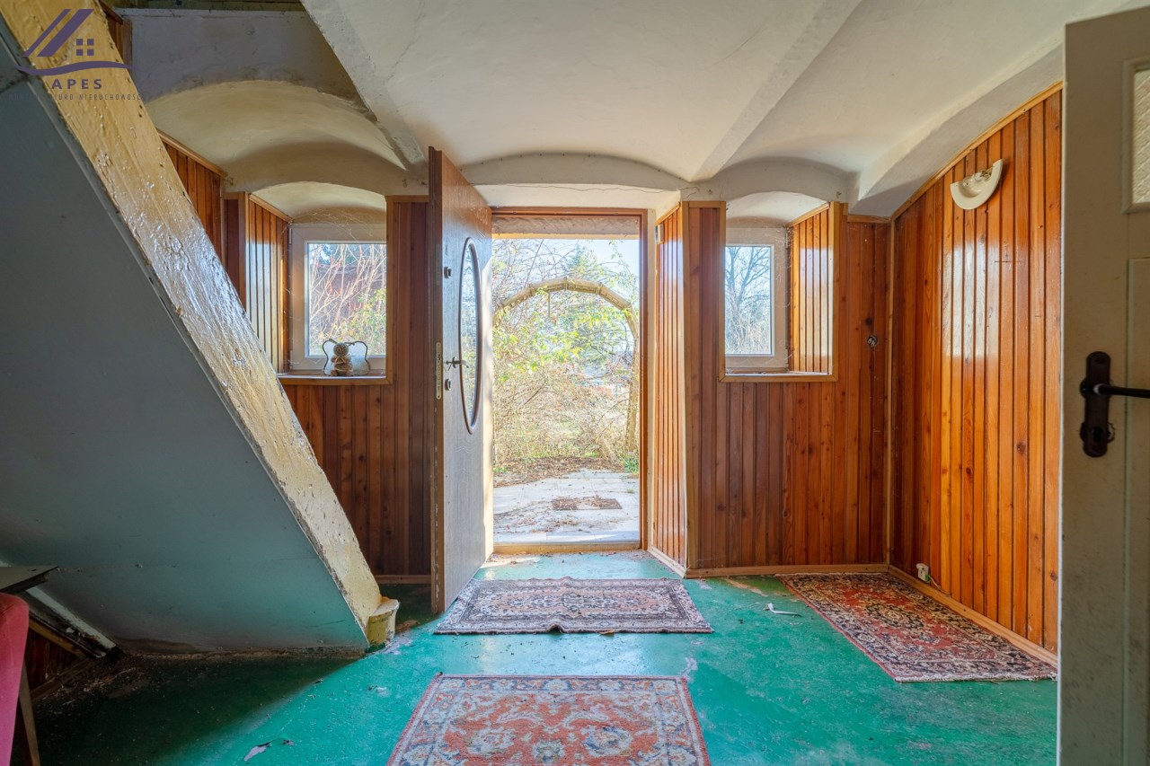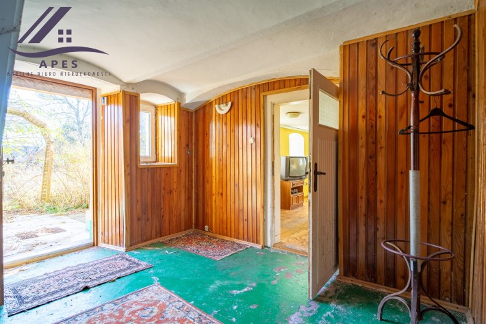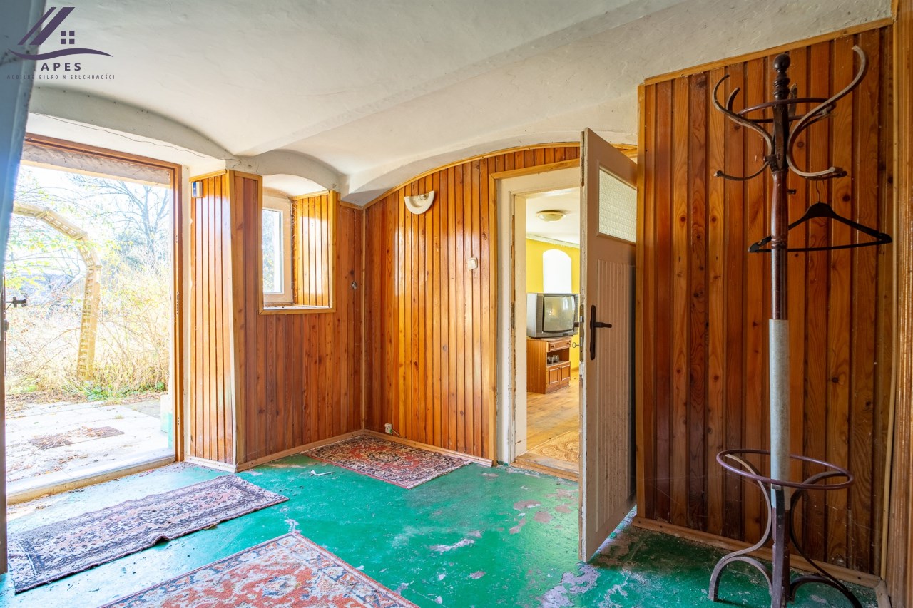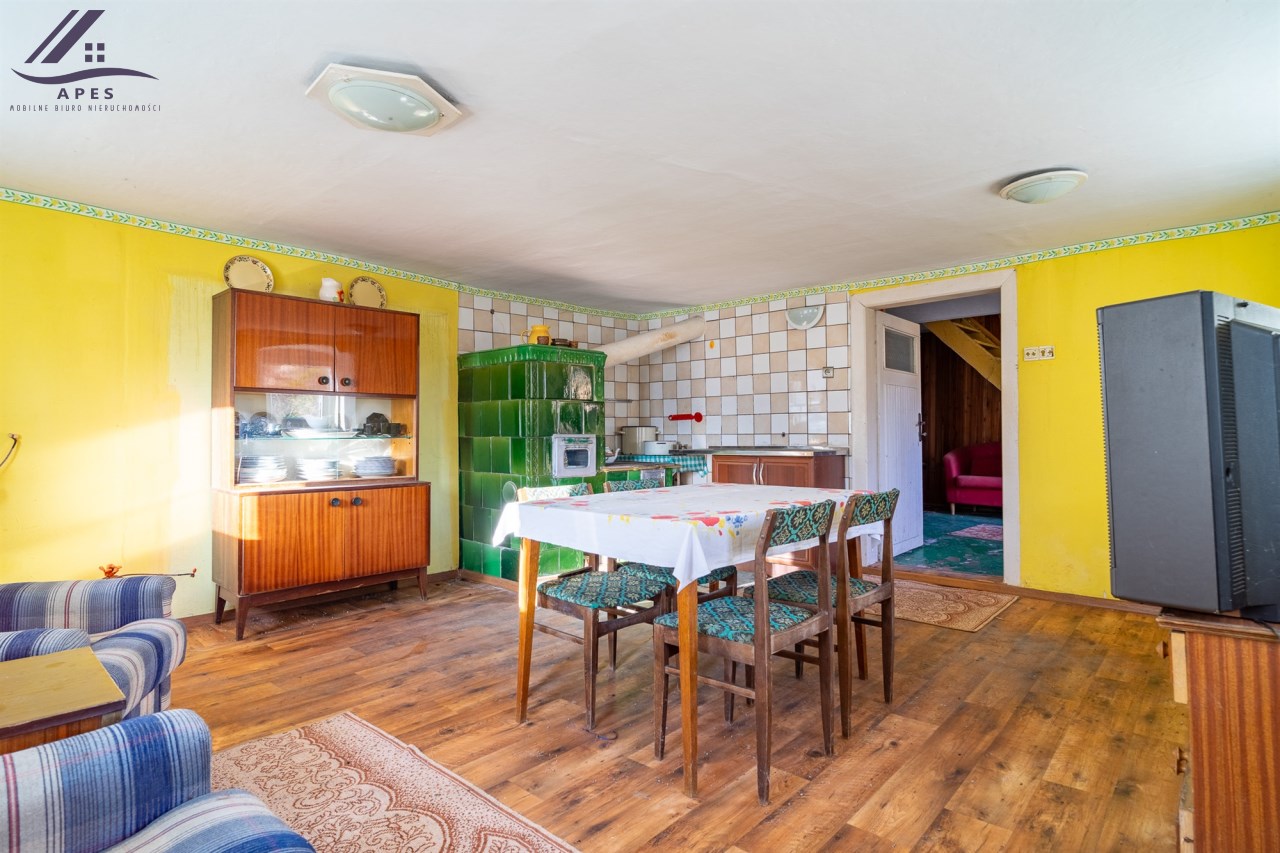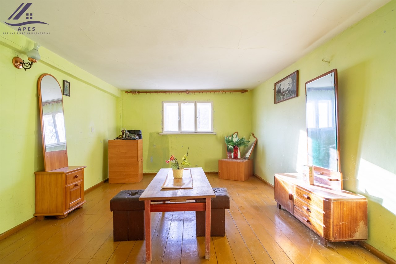 W ofercie dom wraz z pomieszczeniami gospodarczymi oraz stodołą, posadowione na działce o powierzchni 808m2.