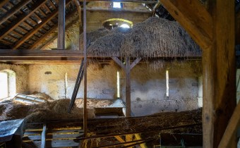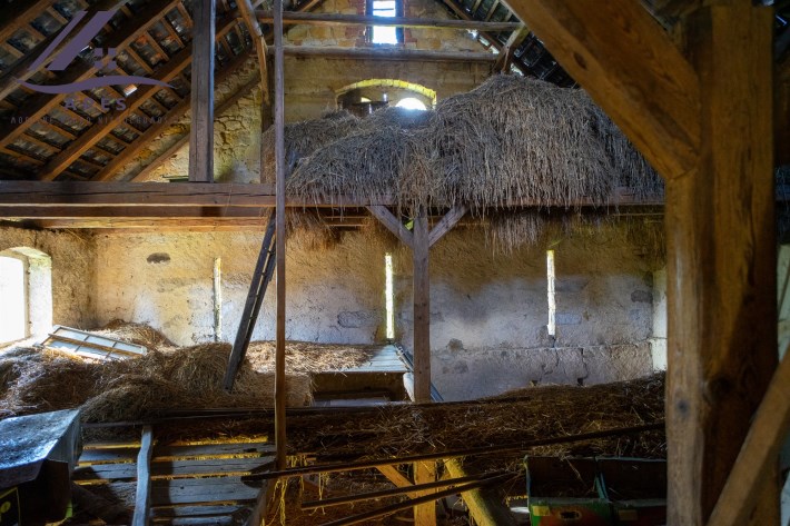 Obok budynku mieszkalnego znajduje się stylowa, zbudowana z piaskowca stodoła.