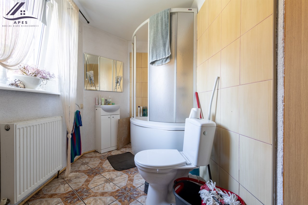 duża, jasna łazienka z wc o pow. 8,10 m2