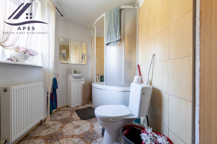 Do domu podłączona jest woda miejska, prąd oraz własne szambo.