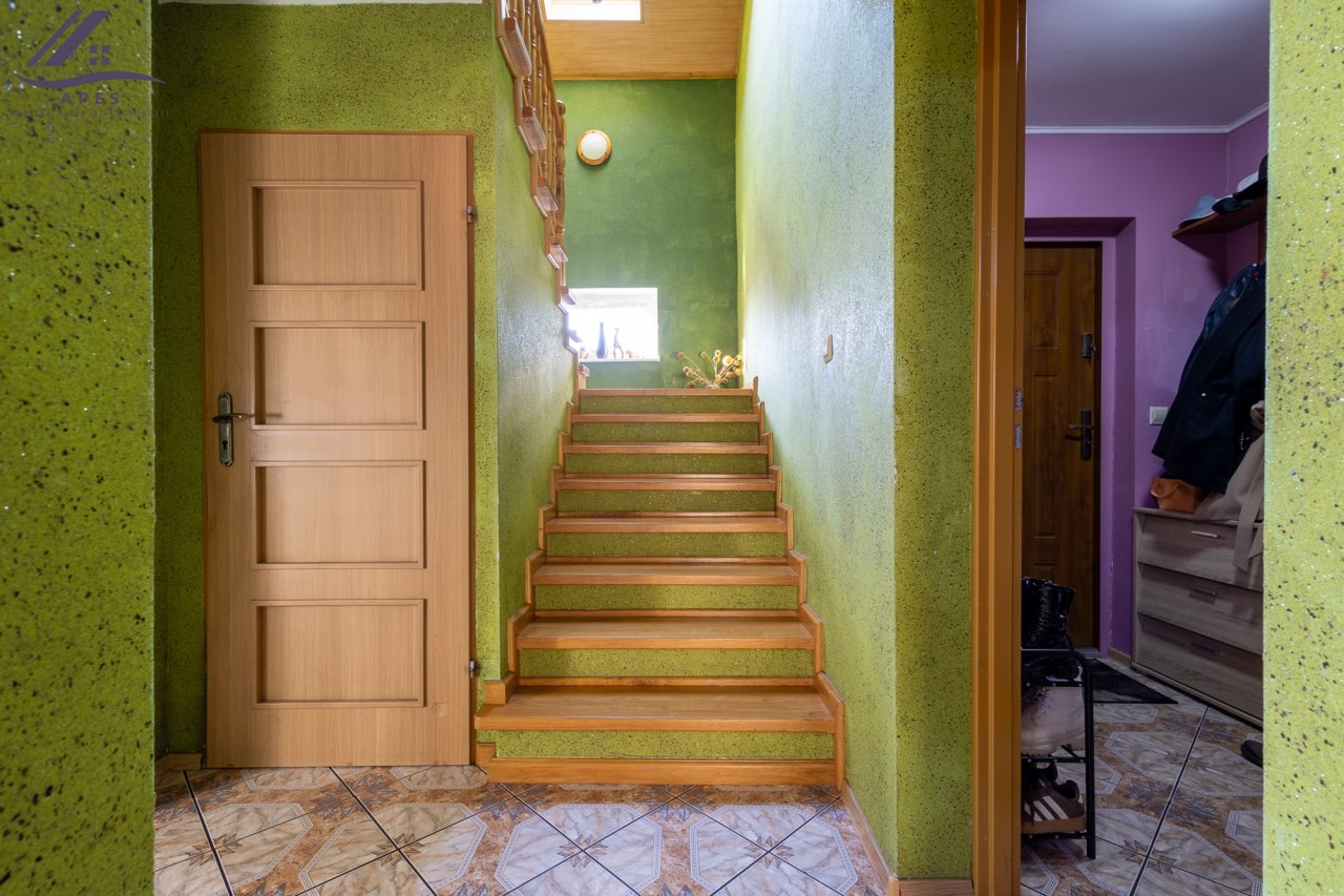 Drewnianymi, masywnymi schodami udajemy się na I piętro, gdzie mamy pomieszczenia: