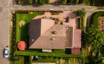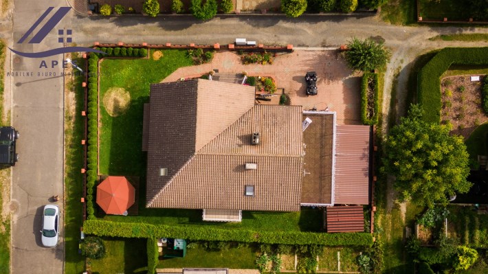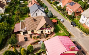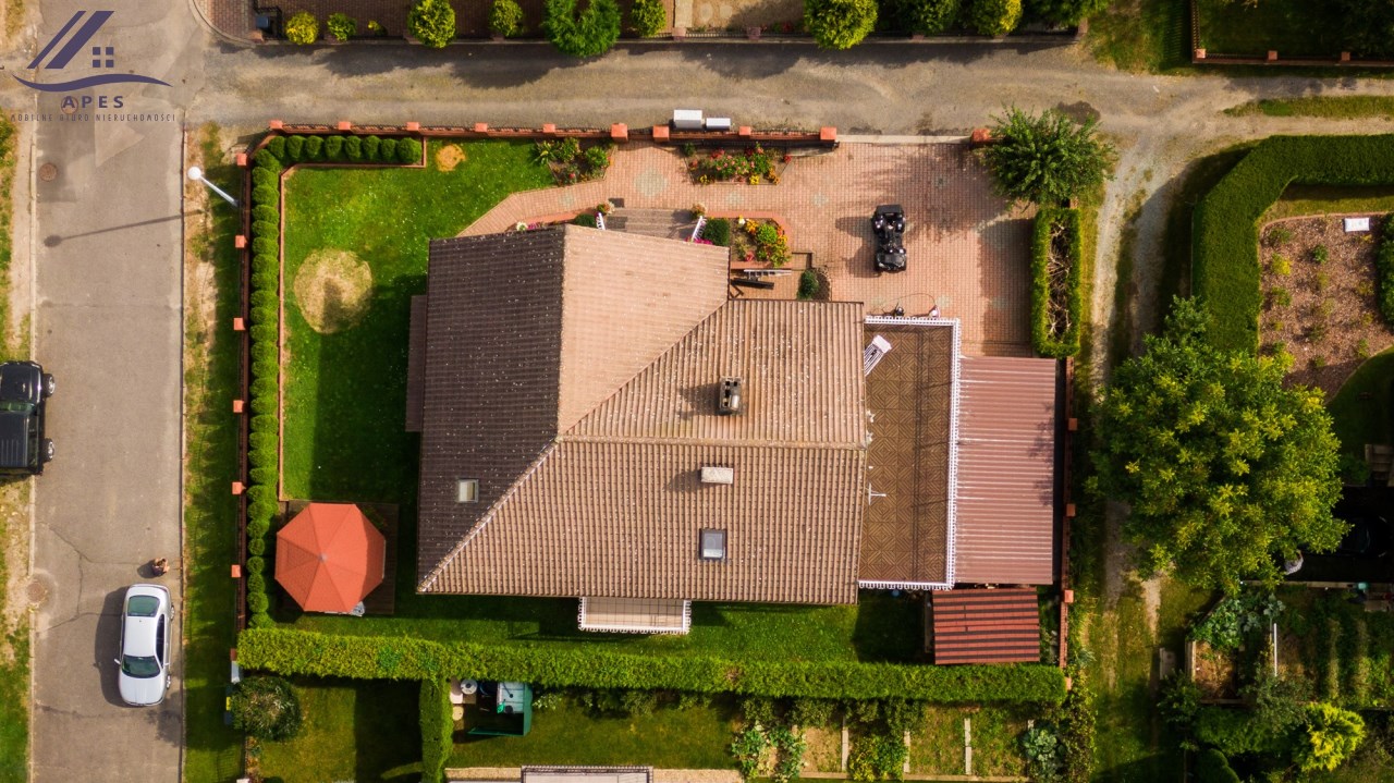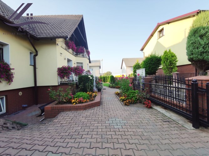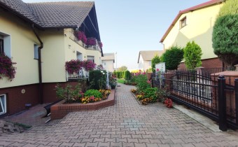 Dom usadowiony na 6 arowej działce, która jest zadbana, pełna zieleni i roślinności.