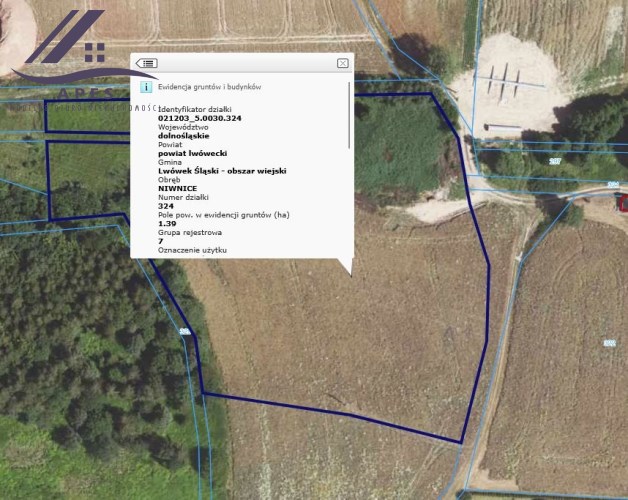 APES Nieruchomości & Kredyty hipoteczne przedstawia ofertę sprzedaży działki rolnej w miejscowości Niwnice, gmina Lwówek Śląski.